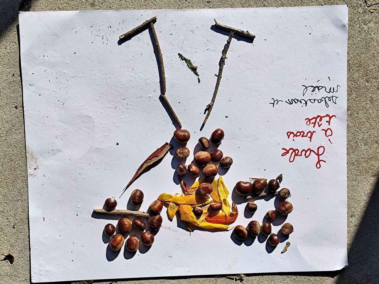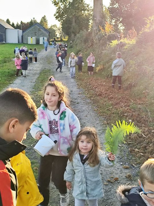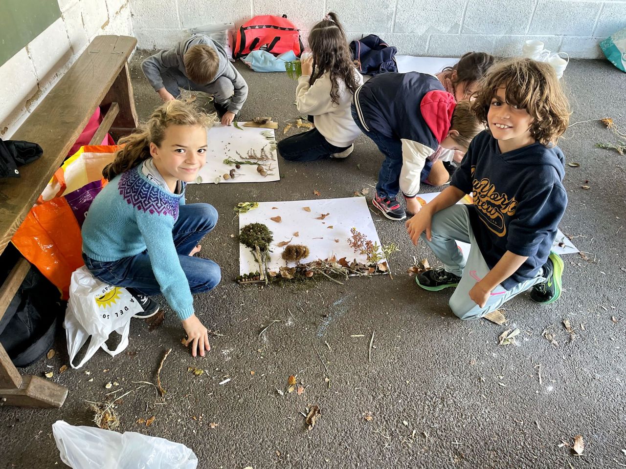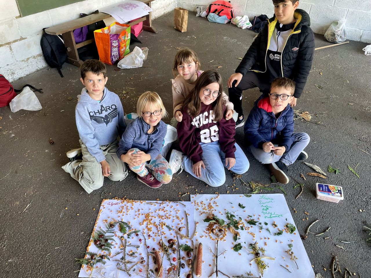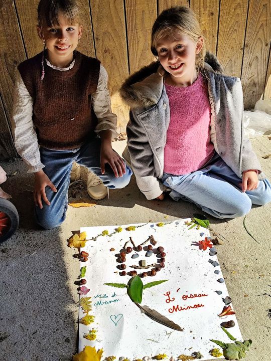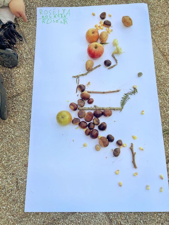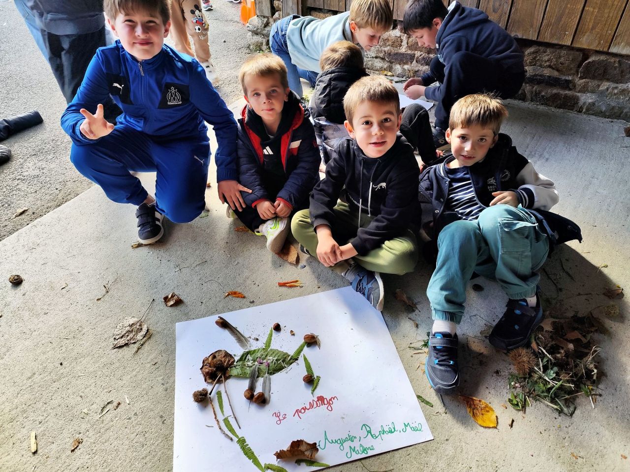 Jeudi 16 octobre, nous avons réalisé des œuvres en land art. Le lendemain, nous avons ramassé des châtaignes pour le pot.