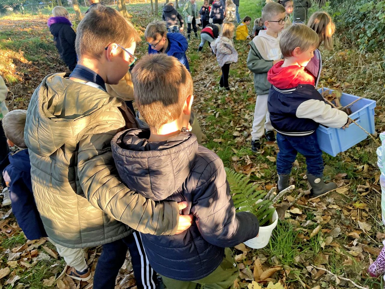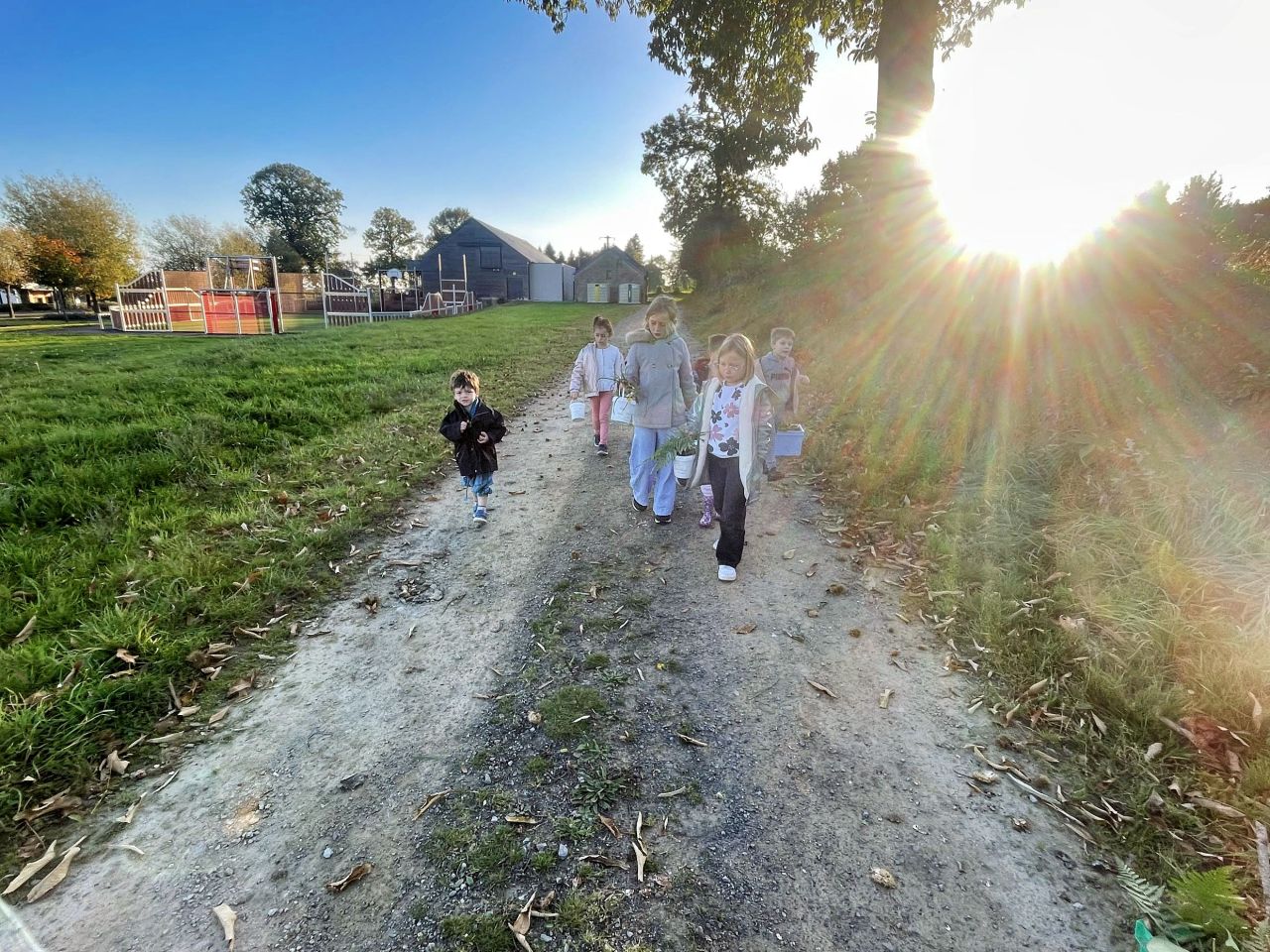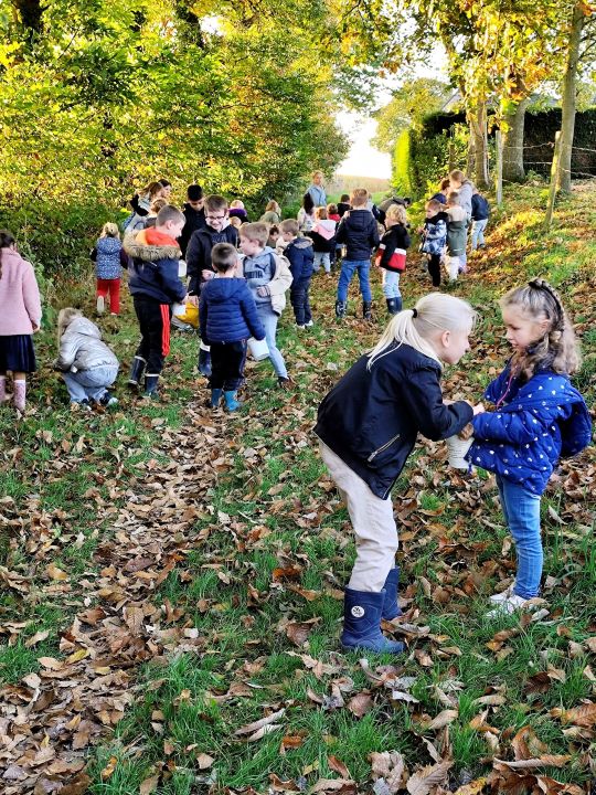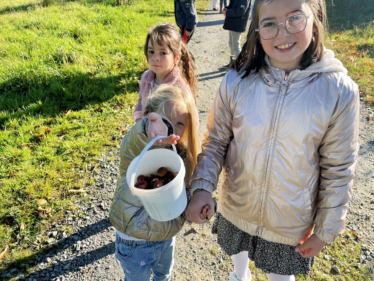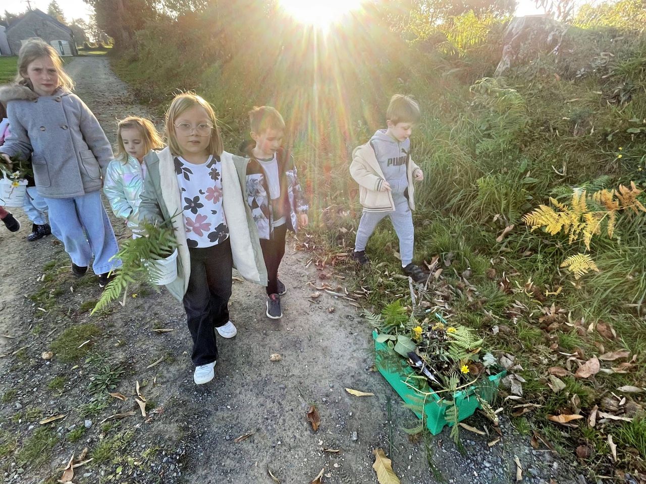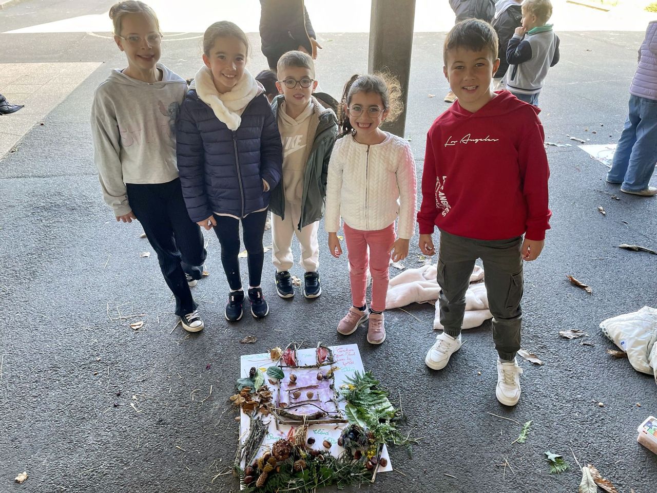 Jeudi 16 octobre, nous avons réalisé des œuvres en land art. Le lendemain, nous avons ramassé des châtaignes pour le pot.